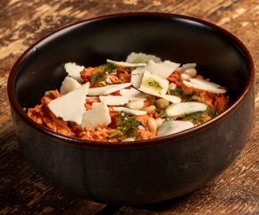 Warme kiprollade,rucola,zongedroogde tomaatjes,pijnboompitjes en parmezaanse kaas